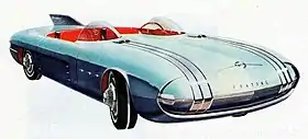 The Pontiac Club de Mer was a purpose-built, experimental car that was built by Pontiac for the General Motors Motorama in 1956 to celebrate General Motors' commitment to futuristic design. The brainchild of GM engineer-designer, Harley Earl (Paul Gillian was also involved being the Pontiac Studio head at the time), the "de Mer", or French for "of the sea", was a two-door sport Roadster that incorporated innovative breakthrough styling like a sleek, low-profile body encasing a large powerplant, a design trend used widely in LSR (land speed record) trials at Bonneville Salt Flats in Utah during the 1950s. One Club de Mer prototype was constructed and unveiled, along with another ¼-scale model, in Miami, Florida. As per GM's "kill order",[2] it was reportedly scrapped in 1958.
