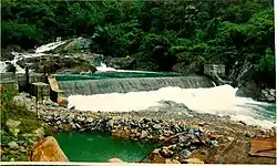 Poozhithodu Weir is a small diversion dam in Kavilumpara panchayath in Maruthomkara village of Kozhikode district in Kerala, India. This project is a run – off the river scheme utilizing water from Illiani puzha and Kadanthrapuzha . It is 61 km away from Kozhikode and near to Perambra town.The weir is constructed across Kadanthrapuzha.[1] The weir is a 6 metres (20 ft) high and 57 metres (187 ft) long concrete Gravity type dam. Water from the weir is directed through a channel which is 790 meter in length to a forebay tank. From there the weter is taken to Poozhithode Power station using a penstock pipe which is 125 meter long and 1.5 meter in diameter. The Project started in 2009 and was completed in 2011. The Power plant capacity is 4.8 Megawatts and annual production is 10.97 million units. [2]