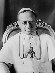 - ↑ Pham, p. 45, quote: "When Pius XI was complimented on the publication, in 1937, of his encyclical denouncing Nazism, Mit Brennender Sorge, his response was to point to his Secretary of State and say bluntly, 'The credit is his.'"