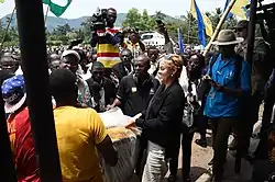 ![]() A crowd gathering in the city to see MONUSCO officials | |