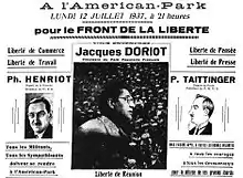 Announcement of the meeting of the Freedom Front in Bordeaux on 12 July 1937.