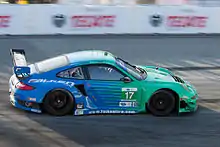 In November 2011, Porsche presented the final version of the 997 GT3 RSR.[3] The 997 GT3 RSR had been delivered to customer teams around the world since January 2012. The sales price was 498,000 euros plus country-specific VAT. The body of the vehicle was widened by 48 mm and could accommodate 30 mm larger front wheels. In addition, the air flow had been changed. The car received additional air intakes in front of the rear fender. In return, the air scoop on the hood was removed.[4] The cars were used in the 2012 FIA World Endurance Championship and the American Le Mans Series.