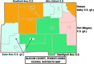 Port Allegany School District is a small, rural, public school district located in McKean County and Potter County, Pennsylvania, United States. Geographically, the district is in the north-central-west part of the state. The district encompasses an area of about 169 square miles (440 km2). It includes Annin and Liberty Townships and Port Allegany in McKean County and Roulette and Pleasant Valley Townships in Potter County. According to 2000 federal census data, it serves a resident population of 6,344. In 2010, the district's population had decreased to 5,737 people.[1] The offices for the school system are in Port Allegany High School, which is in the borough of Port Allegany.