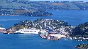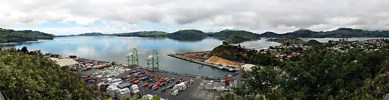 Port Chalmers (Māori: Kōpūtai)[4][5] is a town serving as the main port of the city of Dunedin, New Zealand. Port Chalmers lies ten kilometres inside Otago Harbour, some 15 kilometres northeast of Dunedin's city centre.