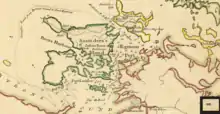 The original name for the settlement was Jason's Town and the term Port Egmont referred to the body of water encompassed by Saunders Island, Keppel Island and the main island of West Falkland.[1] Fort George was the small garrison established nearby.[2] The details of the settlement are included on a map drawn by Carrington Bowles and first published in 1770; only one known copy remains.