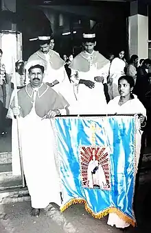 Tradition holds that on July 3, AD 72, at Chennai's St. Thomas Mount, Thomas the Apostle was speared to death.[14] Every year on July 3, the Port Kollam Church commemorates this martyrdom by celebrating Thomas the Apostle's pilgrimage feast (വിശുദ്ധ തോമാശ്ലീഹായുടെ തീർത്ഥാടന തിരുനാൾ).[15] On the eve of the feast day, there is a procession carrying the relic of Thomas the Apostle covering places beyond the ecclesiastical jurisdiction of the Port Kollam parish. On the feast day, a jubilant holy mass is conducted, and most commonly, the mass will be a pontifical mass led by a bishop. The rededication of the relic on the altar and the subsequent lowering of the raised flag mark the conclusion of the feast.