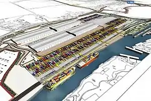 Port Salford is a freight terminal on the banks of the Manchester Ship Canal in Barton-upon-Irwell, Greater Manchester, England, 6 miles (9.7 km) west of Manchester city centre. The port is part of the Atlantic Gateway project and its construction was led by Peel Ports, a subsidiary of the Peel Group, and was opened in 2016.[1]
