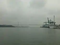 Some of Xiamen port facilities, seen against the background of Haicang Bridge