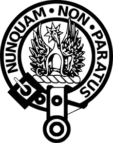 Scottish clans Armigerous clans Scottish clan battles Scottish clan chiefs Gaelic families of Norse descent Scottish clan seats Lists of Scottish clan chiefs Scoto-Norman clans Clan Agnew Clan Anstruther Clan Balfour Clan Barclay Clan Bissett Clan Boyd Clan Boyle Clan Cameron Clan Campbell Clan Cheyne Clan Chisholm Clan Charteris Clan Cochrane Clan Comyn Clan Crawford Clan Cunningham Clan Dewar Clan Donald Clan MacDonald of Clanranald Clan MacDonald of Glengarry House of Douglas and Angus Clan Dundas Clan Erskine Clan Fenton Clan Fergusson Clan Fletcher House of Gordon Clan Graham Clan Grant Clan Gregor Clan Haig Clan Hay Clan Henderson House of Hamilton Clan Johnstone Clan Kennedy Clan Kerr Clan Lamont Clan Leslie Clan Lindsay Clan Lyon Clan MacAlister Clan MacAulay Clan MacDonald of Keppoch Clan Macdonald of Sleat MacDonnell of Antrim Clan MacDougall Clan MacDuff Clan Mackay Clan Mackenzie Clan Mackinnon Clan Mackintosh Clan Maclaine of Lochbuie Clan MacLaren Clan Maclean Clan MacLellan Clan Macleod Clan Macnaghten Clan MacNeil Clan Macpherson Clan Macrae Clan Maitland Clan Matheson Clan Maxwell Clan Montgomery Clan Munro Clan Napier Clan Ogilvy Clan Primrose Clan Ramsay Clan Rose Clan Ross Clann Ruaidhrí Clan Schaw Clan Scott Clan Sinclair Clann Somhairle Clan Stewart Clan Stirling Clan Swinton Clan Wemyss Clan Young Scottish clan stubs WikimediaThe following Wikimedia Foundation sister projects provide more on this subject: