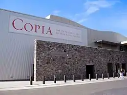 Copia: The American Center for Wine, Food & the Arts was a non-profit museum and educational center in downtown Napa, California, dedicated to wine, food and the arts of American culture. The center, planned and largely funded by vintners Robert and Margrit Mondavi, was open from 2001 to 2008. The 78,632-square-foot (7,305.2 m2) museum had galleries, two theaters, classrooms, a demonstration kitchen, a restaurant, a rare book library, and a 3.5-acre (1.4 ha) vegetable and herb garden; there it hosted wine and food tasting programs, exhibitions, films, and concerts. The main and permanent exhibition of the museum, "Forks in the Road", explained the origins of cooking through to modern advances. The museum's establishment benefited the city of Napa and the development and gentrification of its downtown.