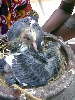 The word "squab" probably comes from Scandinavia; the Swedish word skvabb means "loose, fat flesh". The term formerly applied to all dove and pigeon species (such as the wood pigeon, the mourning dove, the extinct-in-the-wild socorro dove, and the now extinct passenger pigeon,) and their meat. More recently, squab meat comes almost entirely from domesticated pigeons. The meat of dove and pigeon gamebirds hunted primarily for sport is rarely called "squab". (Full article...)