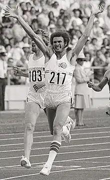 Juantorena made it to the 800m Olympic final, and led the field for most of the race, eventually winning in a world record time of 1:43.50.[54] He was the first non-English speaking athlete to win Olympic gold in this event. Three days later, he also won the 400 meter final, setting a low-altitude world record at 44.26.[55] By winning the 400 meters, he became the first athlete since Paul Pilgrim at the 1906 Intercalated Games to do such a double at an Olympic sports event, and was the only man to do so at an officially recognized Olympics.[56][57]