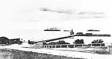 The Portarlington Pier was constructed in 1859, after a petition from local farmers demanding access to a public jetty, and it quickly became an important port of call for the network of steamers plying Port Phillip Bay, both for goods and passengers. The Petrel, the first vessel serving the direct run to Melbourne's Hobsons Bay, was reportedly doing a brisk trade by 1866, delivering hay, butter, eggs, cheese, potatoes, wheat, flour, geese, turkeys, poultry, bacon, pork, and pigs, and returning with supplies of tea, sugar, coffee, wine, beer, spirits, and other commercial items. The jetty was extended in 1870, allowing sufficient depth for shallow draft vessels to dock at any tide, and soon daily steamers from Melbourne were calling. The first to pick up passengers and cargo was the Despatch, in 1872. The direct run to Melbourne provided markets for large deliveries of potatoes and onions from around Portarlington, and lines of carts laden with produce were a common sight heading down to the port. At times up to eight or nine lighters would be loading at the jetty with cargo for Melbourne, as well as a steamer. The jetty was reconstructed in 1872, and storage sheds added. In 1871, there were 343 inhabitants of Portarlington.