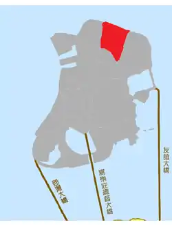 The Portas do Cerco is an area in Nossa Senhora de Fátima, Macau, China. Located on the northern tip of the Macau Peninsula, it is known by the Barrier Gate separating Macau from mainland China. The Portuguese built the gate in 1849 to replace a crumbling wall that the Chinese erected during the Ming dynasty in 1573.[1][2] The Chinese built a garrisoned wall to control the flow of people and goods.[3] It was the site of the Passaleão incident, a clash between the Qing dynasty and the Kingdom of Portugal in 1849 over the death of Macau's governor Ferreira do Amaral. Led by Colonel Mesquita, Portugal won the small battle which led to the extension of Macau's border northwards.[4] At the limit of said expansion, the Portas do Cerco was built with the inscription "A pátria honrai, que a pátria vos contempla" (Portuguese for "Honor your fatherland, for your fatherland looks over you") on the façade on its inner arch in 1849. The Barrier Gate served as a de facto boundary, but the precise limits of Macau's border has never been formally demarcated.[5]