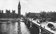 - ↑ Portcullis House, then incomplete and with its roof under construction, can briefly be glimpsed in the traditional pre-credits sequence of the James Bond film The World Is Not Enough, as Bond chases a villain by speedboat along the Thames from the MI6 Building at Vauxhall Cross to the Millennium Dome. The film was released in November 1999, having presumably been filmed a year or so earlier.