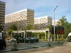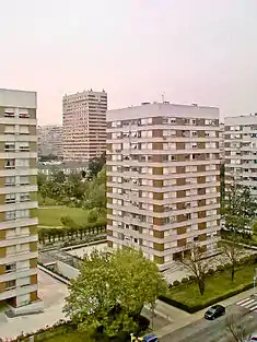 Similarly, in the early part of the 1960s, a development in Buenos Aires had a comparable effect on the future urbanization of Portela; the development was geometric in design, with composite linear roadways around a central centre.[2] In Lisbon, a similar layout was achieved by a New York architect, who was commissioned to construct a development that centred on a large commercial mall in the 1970s (the first of its type to be completed using urban planning concepts in the capital).[2] The idea was to organize apartment blocks around a central commercial structure, in order to create a pole of socio-economic activities. Constituted in 1985, the civil parish of Portela has become a Portuguese reference for urban architecture.