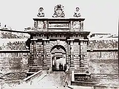 In the mid-19th century the British government enlarged the gate by adding a second archway to accommodate the increasingly heavy traffic in the Grand Harbour area.[8] This enlargement was designed by the architect Col. E. W. Dunford of the Royal Engineers,[3] and it cost a total of £900. The second gate was inaugurated on 17 August 1868, during the governorship of Sir Patrick Grant.[6]