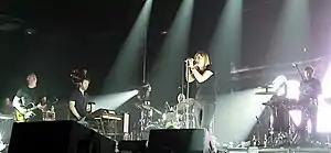 In February 2005, the band appeared live for the first time in seven years at the Tsunami Benefit Concert in Bristol.[22] Around that time, Barrow revealed that the band was in the process of writing its third album. In August 2006, the band posted two new tracks on its MySpace page (called "Key Bored 299 03" and "Greek Jam"), described by Barrow as "doodles".[23] Around the same time, Portishead covered Serge Gainsbourg's "Un Jour Comme un Autre (Requiem for Anna)" on the tribute album Monsieur Gainsbourg Revisited. On 2 October 2007, Portishead stated that the new album Third had been mixed and was nearly complete, and was due for release in early April 2008. The release was later pushed to 28 April. On 8 and 9 December 2007, the band curated the All Tomorrow's Parties festival in Minehead, England. The festival featured their first full live sets in nearly 10 years.[24] They premiered five tracks from the new album: "Silence", "Hunter", "The Rip", "We Carry On", and "Machine Gun". On 21 January 2008, a European tour to support the album was announced,[25] together with a headline spot at the Coachella Valley Music and Arts Festival on 26 April 2008,[26] their only U.S. date on the tour.