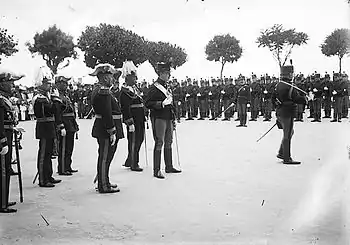 King Manuel II, the last monarch of Portugal, visiting an Army unit, near the end of the monarchy