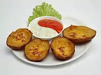 ![]() Potato skins accompanied by dipping sauces, presented as an appetizer | |