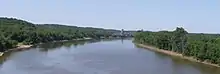 After their arrival at Danville, the group traveled 6 miles (9.7 km) to Sandusky Point (which became Catlin, Illinois), where the caravan resupplied and rested from September 17–20 before continuing their journey. On September 20, General Tipton left fifteen of his soldiers with the caravan and departed with the remainder of the militia on a return trip to Indiana.[55] Judge Polke led the Potawatomi the rest of the way to their new reservation. Between September 20 and October 10, the Potawatomi traveled through the Illinois prairie, passing Monticello, Decatur, Springfield, New Berlin, Jacksonville, Exeter, and Naples, where they ferried across the Illinois River. On October 10, the group left Illinois, crossed the Mississippi River into Missouri on steam-powered ferry boats from Quincy, Illinois.[50][56]