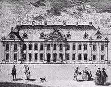 The original building that stood where the palace now stands was burned down by Swedish and Brandenburgian forces during the Swedish Deluge in the 1650s.[1] The new one was commissioned by Ernest Denhoff and construction started in 1693 under the architect Giovanni Pioli. From 1731 it belonged to August Aleksander Czartoryski.