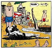 Potrzebie was first used in a story in Mad #11 (May 1954), where it was the exclamation of a character who spoke only in foreign languages and song lyrics, in "Murder the Story", a parody illustrated by Jack Davis. It was used again in Bernard Krigstein's "From Eternity Back to Here!" in Mad #12 (June 1954) on an airplane advertising banner. With the same type font, it reappeared in Jack Davis's "Book! Movie!" in Mad #13 (July 1954), pasted into a panel as the title of an abstract painting seen in the background. In the same issue the word appears as POTS-REBIE, emblazoned on a cauldron in which Robinson Crusoe is roasting a frankfurter. This piece reappeared in one of the earliest Mad paperbacks, Bedside Mad[1] It was illustrated as a rebus in "Puzzle Pages!" in Mad #19 (January 1955). These stories, like others in Mad comics, were written by Harvey Kurtzman. Frequent repetition gave it the status of a catch phrase or in-joke among the readership which continues to the present day. In the first Mad Style Guide, edited by Bhob Stewart in 1994, the word was made available for display on T-shirts and other licensed Mad products. It also sees occasional use as a metasyntactic variable by hackers.