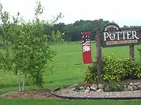 Potter was established near a Native American village along the Manitowoc River.[7] It was originally named Muskratville because of the large number of muskrats that lived in the river and were trapped for their fur.[7] American Civil War Captain Orin R. Potter settled in Potter in 1859 and established a feed mill.[1][7] That same year he renamed the village Potter Mills, which was later shortened to Potter.[1]