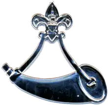 The official Powder Horn course logo is an old-fashioned pioneer's powder horn suspended from the BSA universal emblem.