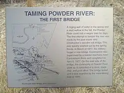 The army built a military road and telegraph line along the Bozeman Trail in 1877 and 1878. Soldiers from Cantonment Reno completed a wooden bridge at the Powder River Crossing on April 6, 1877.[4]