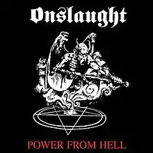 Power from Hell is the debut studio album by English thrash metal band Onslaught, released in February 1985. Apparently confusion has arisen as to who coined the term Death Metal, as it was Onslaught who wrote their song 'Death Metal' in early 1984 and recorded the album version later in the same year, and Possessed who recorded their song entitled "Death Metal" on their 1984 demo tape of the same name.[4] "Power from Hell" was reissued in 1996 by Powerage Records, again in 2005 by Blackend Records and received a full remaster by Jacob Hansen for the 2012 release on AFM Records;[5] the 2012 release rectifies the track listing problem encountered on previous releases and has revamped artwork with liner notes by Steve Grice.