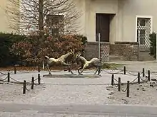 Goat sculpture is located on Collegiate Square, near the main entrance to the Municipal Office, the former Jesuit College. The sculpture was designed by Robert Sobociński in 2002.[6] In 2019, due to renovations of the square, the goat sculpture was moved to Chopin Park.[7]