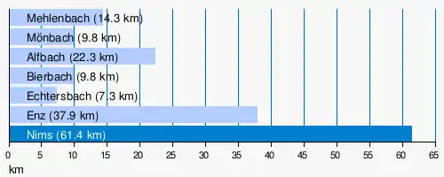 • Enz (r), 37.9 km (23.5 mi), in Holsthum