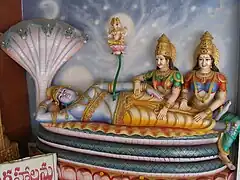 ![]() Statue of Narayana lying on Shesha beside Sridevi and Bhudevi, aspects of Lakshmi | |