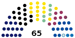 The Prague City Assembly (Czech: Zastupitelstvo hlavního města Prahy (ZHMP)) is the elected legislative body of Prague, the capital city of the Czech Republic. The capital city of Prague is a separate type of territorial self-governing entity and is therefore neither a region nor a municipality. The assembly has similar powers to those of Czech regional and municipal councils. It is composed of 55 to 70 members who are elected as part of the municipal council elections for 4 years.[1]