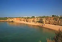 Praia Nova (New Beach) is a small beach near Praia da Senhora da Rocha on the Atlantic coast of the civil parish/freguesia of Porches in the municipality/concelho of Lagoa (Algarve) in Portugal.