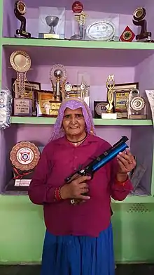 Prakashi Tomar (born 1 January 1937)[1] is an Indian sharpshooter from Johri village of Uttar Pradesh's Baghpat district. She is one of the oldest sharpshooters in the world.[2] She is an icon in the world of shooting.[3][4][5][6]