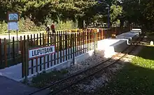 This new station was opened in March 2011 in time for the new 'season' of the Prater park.[1] The station's unusual name (English: Swiss House - Air Castle) is the result of naming it after two nearby businesses, in conjunction with which the station has been built. Schweizerhaus and Luftburg are restaurants, both located just outside the Prater amusement park, on the way into the public park. The station has only one platform, as trains only stop in the eastbound direction (coming out of the Prater park). Westbound trains slow down, but do not stop, and a fence separates them from the station platform.