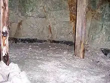 View of a seam of Flint in the Grimes Graves excavation. The pit props are modern supports added when the site was excavated - Whitlingham Evidence has been found in the area of a Neolithic flint axe factory, including unfinished axes and waste flakes. In the 18th century a human skeleton, together with the picks made from deer's antlers, were found in one of the chalk tunnels – possibly the body of one of the Neolithic flint miners.