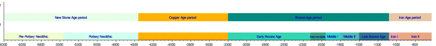 Iron Age IIIron Age ILate Bronze AgeMiddle Bronze Age IEarly Bronze AgePottery NeolithicPre-Pottery NeolithicIron AgeBronze AgeChalcolithicNeolithic