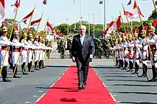 The presidency of Michel Temer began on May 12, 2016, when the vice-president of the Republic, Michel Temer, temporarily assumed the position of president of the Brazilian Republic, after the temporary removal of President Dilma Rousseff, as a result of the acceptance of the impeachment process by the Federal Senate.[1][2] Once the process was concluded, on August 31 of the same year, Temer took over the position permanently, which he held until January 1, 2019, when the administration of Bolsonaro began.[3]