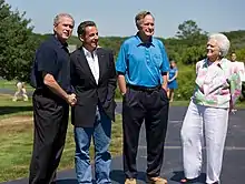 Sarkozy then went in vacation to the United States, taking his family to Lake Winnipesaukee in New Hampshire. He was expected to stay in the 11-bathroom shorefront mansion of former Microsoft executive Michael Appe.[27] However, he interrupted his vacation for a one-day trip to France after the death of Cardinal Lustiger, former archbishop of Paris, whose funeral he was to attend.[53] A presidential plane flew him on 10 August to Paris and then back to America. He visited President George W. Bush in Kennebunkport, Maine,[54] and returned to France by commercial jet on 21 August.