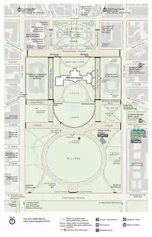 ![]() President's Park in Washington, D.C., including (left to right in center): The Ellipse, the White House, and Lafayette Square | |