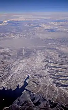 The Price River watershed comprises 1,900 square miles (4,900 km2).[6] The USGS indicates that the Price River originates at Scofield Reservoir in the Wasatch Plateau in Carbon County in central Utah. From the reservoir, the river flows briefly eastward and northeastward into Utah County, where it receives the flows of the White River at Colton. Colton was originally named Pleasant Valley Junction, and Scofield Reservoir would occupy a large portion of Pleasant Valley.[7] Alternatively, historical accounts place the origin of the Price River at the confluence of the White River and Fish Creek, such that lower Fish Creek continued from below Scofield Dam to said confluence.[7] The White River drains the Tavaputs Plateau.
