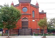 It has been restored by Greater Newark Conservancy and is now used as an environmental center.[5] It was listed on the New Jersey Register of Historic Places on January 16, 1990.[6][7] The brick, Moorish Revival synagogue features windows with Horseshoe arches, an entrance arch with red and white Voussoirs, and twin towers topped by modest domes.
