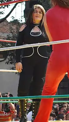 Rodríguez trained for her professional wrestling career under a number of different wrestling coaches including José Feliciano and Rudo Valentino.[1][2] She later received additional training from the Consejo Mundial de Lucha Libre (CMLL) trainers Franco Columbo, Tony Salazar, and Último Guerrero.[1] She made her professional wrestling debut in 1993, working as a tecnica or "face" (the wrestling term for someone who portrays a "good guy" character), using the ring name "Princesa Blanca" (Princess Blanca).[1] Unlike most wrestlers in Mexico Rodríguez did not start her career wearing a mask. She began her career in the Universal Wrestling Association (UWA) and actually worked a few matches opposite her idol Lola Gonzales.[7] She remained with the UWA until the UWA closed down in 1995.[8] In the years following UWA closing down Princesa Blanca worked for a number of wrestling promotions in Mexico. In November 1995 she participated in a tournament for the TWF World Women's championship, a tournament co-promoted by CMLL and Japanese promotion JDStar. While she lost in the first round to Japanese wrestler Chikako Shiratori she made contacts with the Japanese promotion and was invited to tour with JDStar in 1996.[9] Upon her return from Japan she occasionally worked for CMLL as the promotion did not regularly promote women's wrestling in the period between 1996 and 1999.