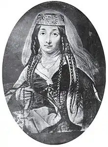 Princess Anastasia of Georgia (Georgian: ანასტასია; 3 November 1763 – 17 May 1838) was a Georgian princess royal (batonishvili), a daughter of King Heraclius II of Georgia of his third marriage to Darejan Dadiani. She was married into the princely family of Eristavi, former Ducal House of Ksani.