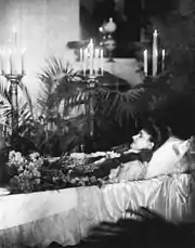 Caroline caused a scandal by seeking refuge in Switzerland; her husband followed soon after, as it was made understood that she had not fled the marriage but instead had simply sought to be away from her entourage in Weimar.[4][6] She was eventually induced to return, but soon lost health and lapsed into melancholia. She died eighteen months after their marriage, on 17 January 1905, under mysterious circumstances.[4] The official cause of death was pneumonia following influenza; other sources however have suggested suicide.[4] The couple had no children together. She was the last member of the House of Saxe-Weimar to be buried in the Weimarer Fürstengruft, the royal family's crypt. William Ernest later remarried to Princess Feodora of Saxe-Meiningen.