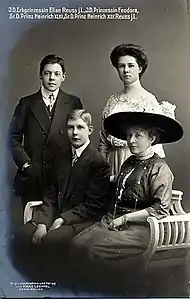 - Princess Viktoria Feodora Reuss JL (21 April 1889 – 18 December 1918) she married Duke Adolf Friedrich of Mecklenburg-Schwerin on 24 April 1917. They had one daughter.