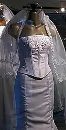 Princess seams[lower-alpha 1] are long rounded seams sewn into women's blouses or shirts to add shaping or a tailored fit to closely follow a woman's shape.[2] They are a dart variation that is sewn into the front or back of a shirt that extends from the waist up to the shoulder seam or armscye.[3] Princess seams are distinct from darts in that they form a continuous line and are a full seam. Darts, on the other hand, are folds sewn into the clothing to shape the resultant garment.